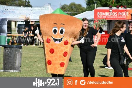 Todo espectáculo tiene un símbolo, una mascota, y en la localidad de Arroyo Corto pensaron en una inquieta porción de pizza para ganarse las miradas, ser foco de las fotos, y acompañar con alegría a los presentes.