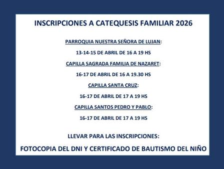 En la Parroquia Nuestra Señora de Luján, en la Capilla de la Sagrada Familia de la Nazareth, en la Capilla de la Santa Cruz y en la Capilla de los Santos Pedro y Pablo del Barrio Juan Murguía de Pigüé están abriendo los registros para los interesados.