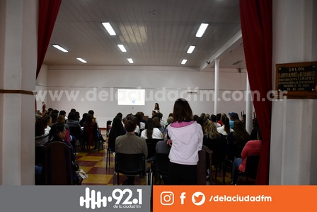 Ambas profesionales se expresan ante los presentes que fueron invitados por La Salle Pigüé y la Fundación CIAN al Salón Josefa Álvarez de Villa Abrile del Honorable Concejo Deliberante.