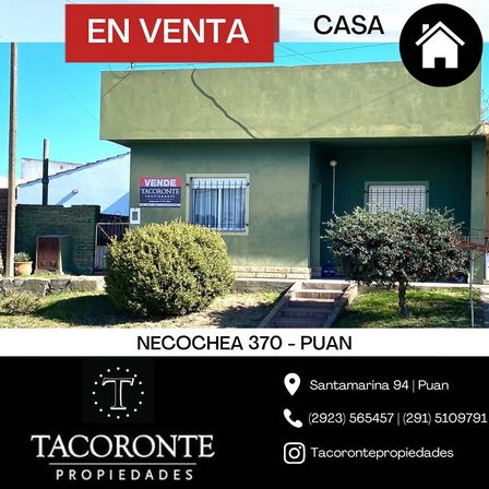 Tacoronte Propiedades recibe consultas en el portal www.tacorontepropiedades.com, al 2923 56 54 57 o en Santamarina 94 de Puan.