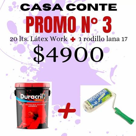 20 litros de Látex Work más un rodillo de lana 17 están a 4.900 pesos.