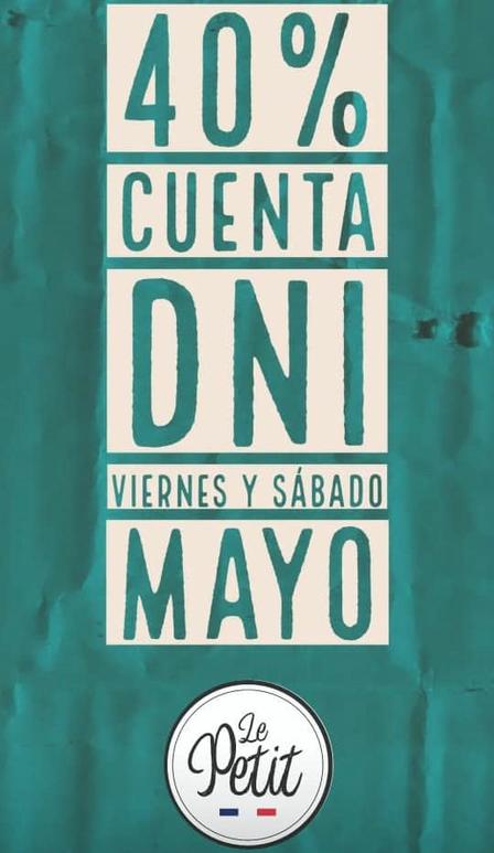 Hay un 40 % de descuento, durante los días viernes y sábado, del mes de mayo.