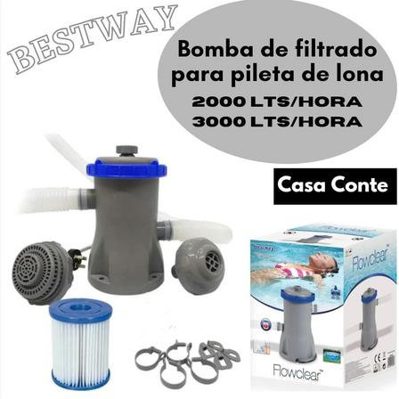 Las bombas de filtrado Bestway para piletas de lona están disponibles en sus versiones de 2.000 litros / hora y de 3.000 litros / hora.