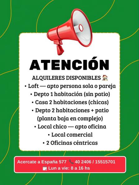 Claudio Mutti Negocios Inmobiliarios cuenta con varios alquileres disponibles