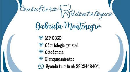 Gabriela Montenegro - Consultorio Odontológico, matrícula 0850, trabaja en odontología general, ortodoncia y blanqueamientos.