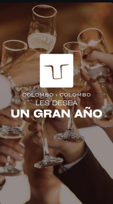 El mensaje indica "Desde Colombo y Colombo y Juan C. López les deseamos Felíz Año Nuevo y un próspero 2026. Gracias por un nuevo año compartido, y muchas gracias por la confianza de siempre".