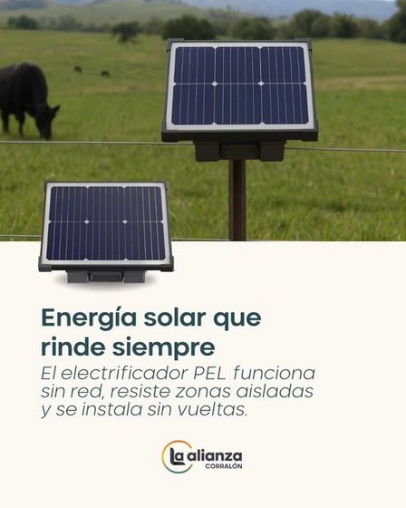 El electrificador solar PEL funciona sin red eléctrica, es eficiente, resistente y perfecto para zonas rurales aisladas, contando con un sistema de instalación rápida y rendimiento constante.
