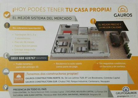Las viviendas pueden ser de 1, 2 o 3 dormitorios. Gauros Viviendas Americanas es una unidad de negocios líder en venta y entrega de Viviendas, con sede central en Córdoba y una presencia que se ramificó en todo país, e inclusive cuenta con dos Contructoras propias ubicadas en Neuquen y Córdoba.
