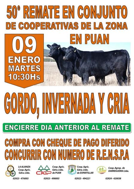 El remate conjunto número 50 estará realizándose el martes 9 de enero del próximo año en la Feria de Puan.