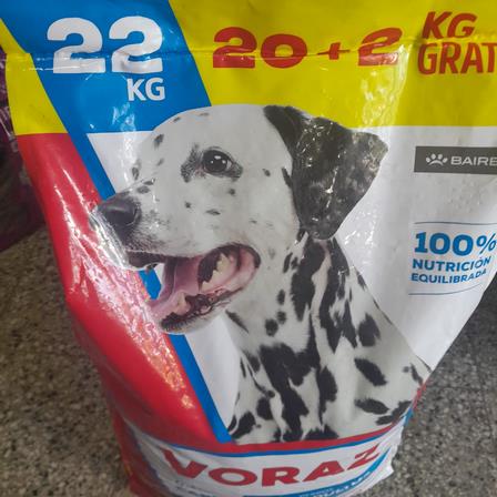 La bolsa de alimentos balanceados para perro, Voraz, de 22 kilos, está a 22.000 pesos