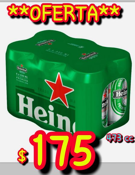 Ahora en el local de calle San Martín 48 de la ciudad pueden encontrarse seis latas de cerveza Heineken de 473 centímetros cúbicos a 175 pesos.