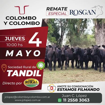 La casa consignataria ya está filmando para el Rosgan Especial de Colombo y Colombo para el 4 de mayo, desde Tandil y que será transmitido en vivo por Canal Rural, a partir de las 10.00 horas de ese día.