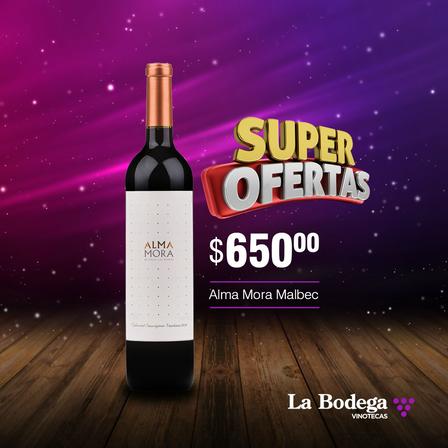 La botella de vino Alma Mora Malbec tiene un valor de 650 pesos en La Bodega Vinotecas.