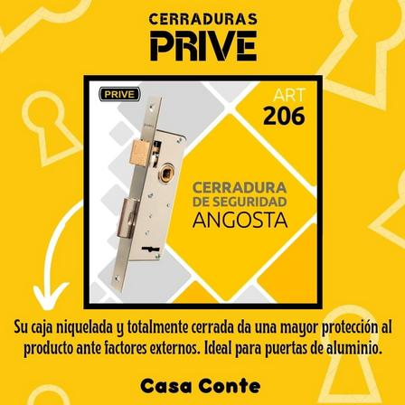Casa Conte vende las cerraduras Prive, de seguridad, angostas, con caja niquelada, ideal para puertas de aluminio.