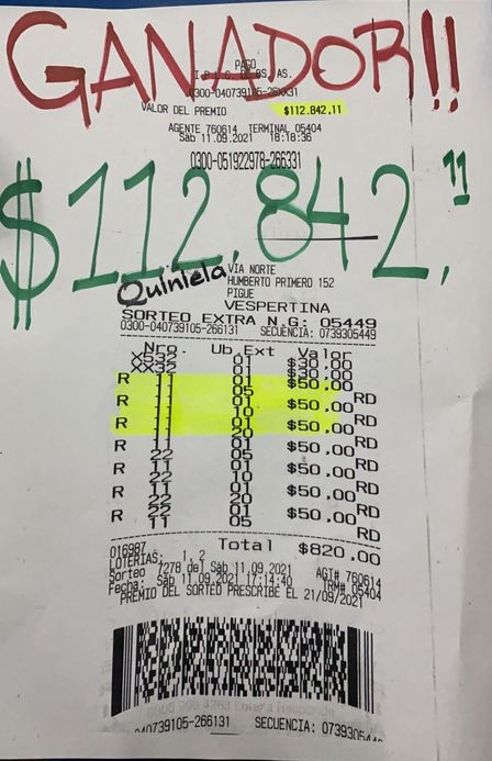 El afortunado ganó la suma de 112.842 pesos cobrando en el acto.