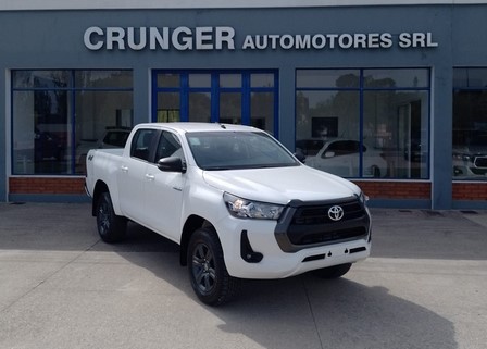 Se encuentra disponible una pickup, blanca, doble cabina, Toyota Hilux SR, 4 x 4, automática, 0 kilómetro.