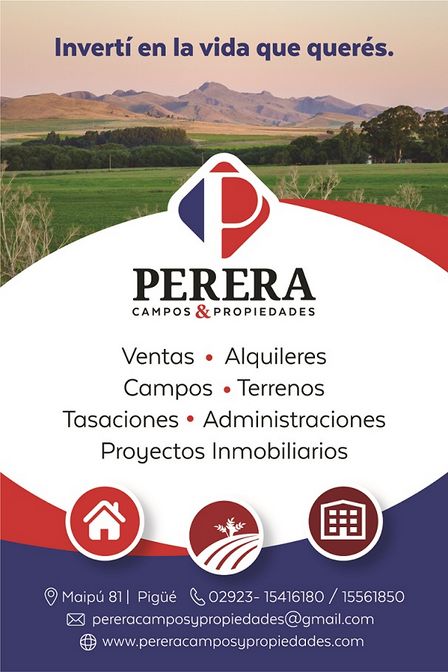 Perera Campos y Propiedades tiene como contacto el teléfono 2923 41 61 80.