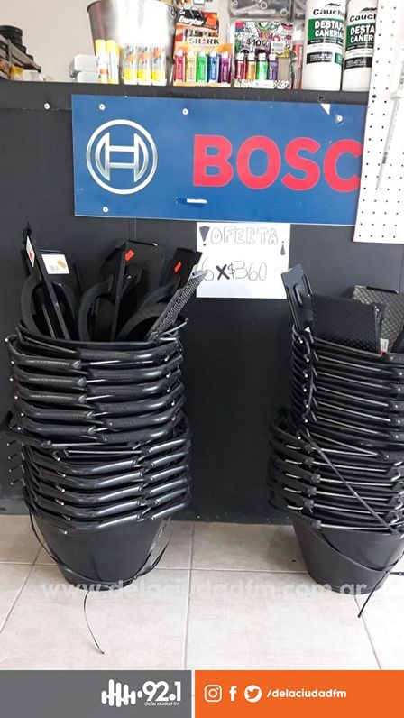 Seis baldes para la construcción cuestan 360 pesos en el local de Lavalle esquina La Pampa de la ciudad.