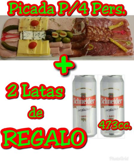 En La Tablita hay 2 latas de cerveza Schneider de 473 cc. de regalo para quienes adquieran la tabla de picada para cuatro personas.