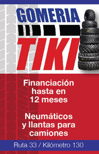En el local de Ruta Nacional 33 promocionan los 12 meses de plazo para la compra de cubiertas de tractor.