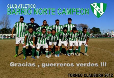El Club Atlético Barrio Norte, donde milita el arquero de Espartillar, Emiliano Wagner, fue quien se quedó con el Torneo Clausura 2012 de Primera División, de la Liga de Fútbol del Oeste, al finalizar en el primer lugar del certamen luego del partido disputado el domingo ante Racing de Fortín Olavarría.