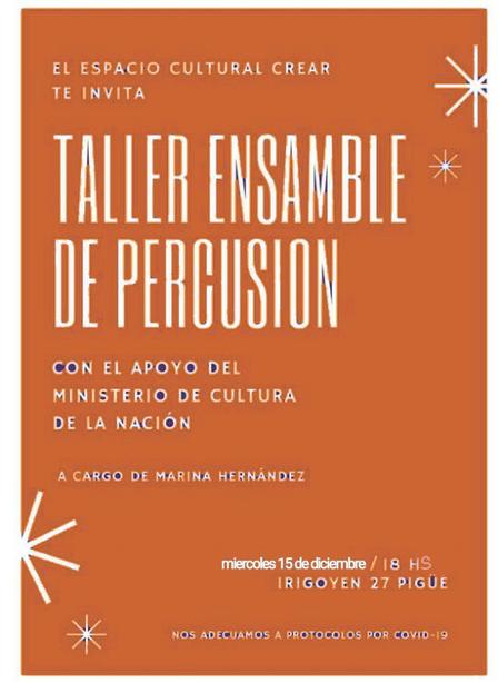 Tendrá lugar, con acceso gratuito, este miércoles, mañana, desde las 18.00 horas, en el Espacio Cultural Crear, ubicado en calle Bernardo de Irigoyen 27 de Pigüé.