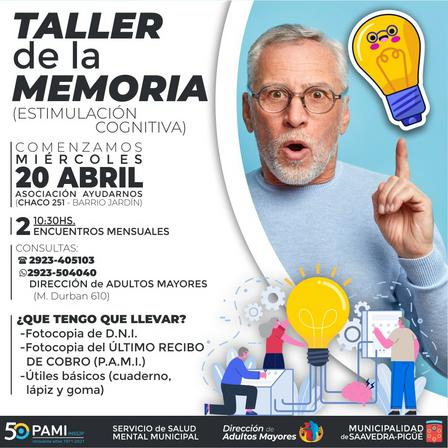 El Taller de la Memoria está contando con una inscripción previa en la Dirección de Adultos Mayores, al 02923 40 51 03, o al 2923 50 40 40.