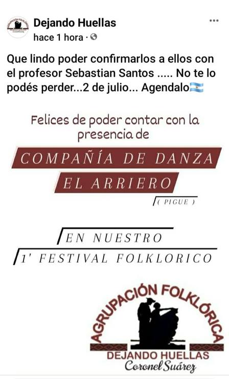 La Compañía de Danzas con sede en Pigüé fue convocada para participar del Primer Festival Folclórico de Dejando Huellas.