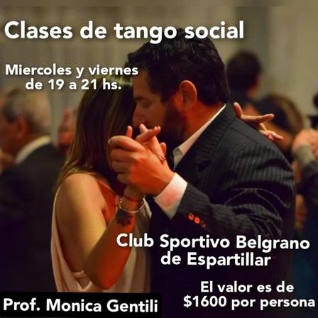 El Club Sportivo Belgrano, los días miércoles y viernes, desde las 19.00 hasta las 21.00 horas, cuenta con clases de tango social.