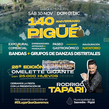 Rodrigo Tapari será el show central del Aniversario de Pigüé