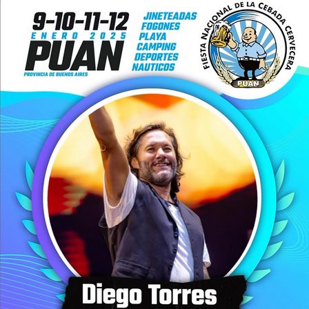 Diego Torres será el encargado de acceder al escenario principal para colocar el broche de oro en la nueva edición de la Fiesta Nacional de la Cebada Cervecera en Puan.