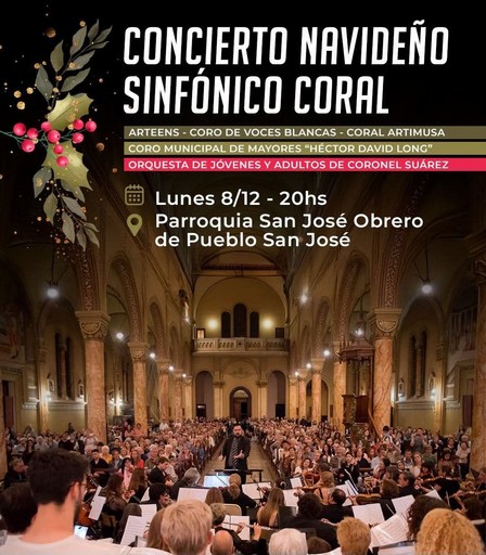 El próximo lunes 8 de diciembre, a las 20.00 horas, en la Parroquia San José Obrero de Pueblo San José, tendrá lugar la puesta en escena del tradicional Concierto Navideño Sinfónico Coral.
