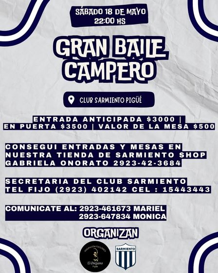 Ya venden las entradas anticipadas para el Baile Campero del Club Sarmiento