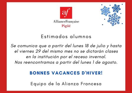 Por el receso invernal las actividades volverán el lunes 1º de agosto a la Alianza Francesa de Pigüé.