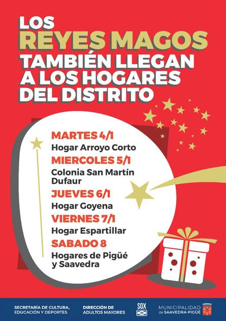 El miércoles los Reyes Magos estarán con los abuelos de Colonia San Martín de Tours y Dufaur, el jueves en Goyena, el viernes en Espartillar, y el sábado en Pigüé y Saavedra.