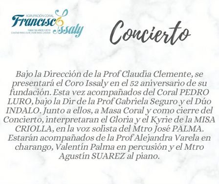 En FM de la Ciudad la Directora de la Agrupación Coral Francisco Issaly expresó “se van a sorprender porque las dos propuestas que nos acompañarán son muy lindas propuestas”.