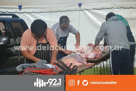 Los colaboradores de la institución deportiva están, desde temprano, realizando los preparativos y la cocción del asado.