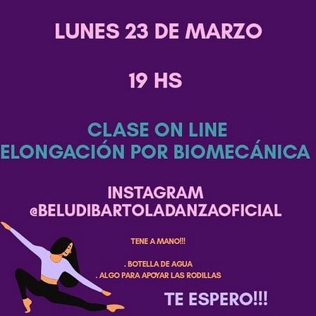 En el Instagram @beludibartoladanzaoficial darán hoy, lunes, por la tarde, una clase especial.