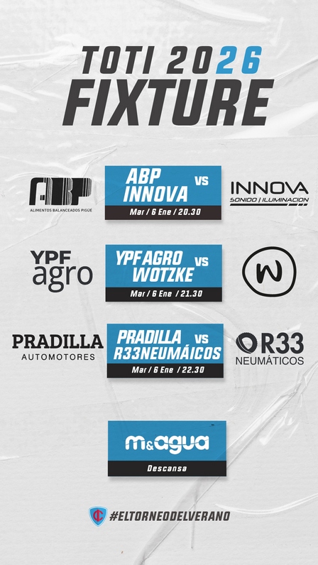 El Torneo Toti 2026 disputa, el martes, su 2° Fecha