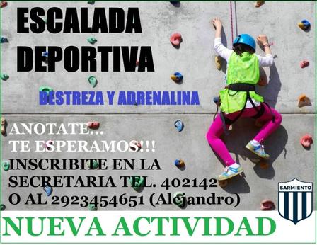 El Club Sarmiento incorporó la propuesta de escalada para quienes quieran sumarse a las clases.