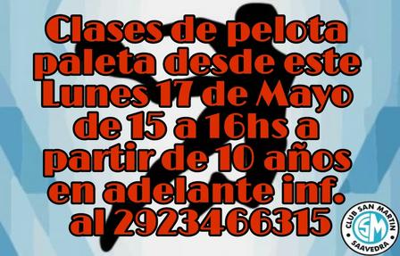 Orientadas a chicos de 10 años en adelante las clases de pelota a paleta inscriben a los interesados que quieran participar a través de los contactos al 2923 46 63 15.