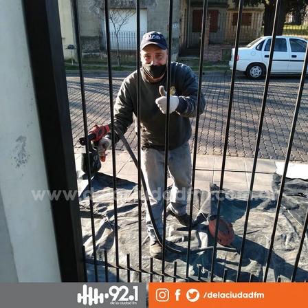 Integrantes de la institución local desarrollaron tareas de lijado y pintura sobre la reja frontal de la entidad pigüense.