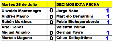 Marcelo Bernardini venció a Andrés Magno, Pablo Etchepareborda le ganó a Rubén Martínez, Jorge Nobo se impuso sobre Osvaldo Montenegro, César Dellapittima hizo lo propio con Marcos Maguna, y Germán Favre doblegó a Miguel Amadío