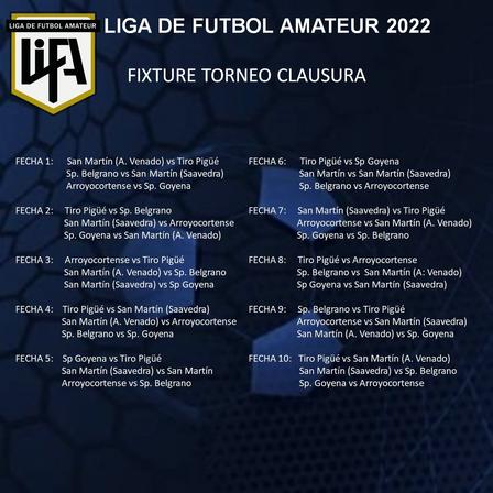 Establecieron el Fixture de la Liga de Fútbol Amateur para su Torneo Clausura