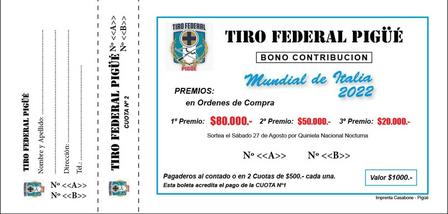 En unos días es el sorteo de un Bono Colaboración del Club Tiro Federal