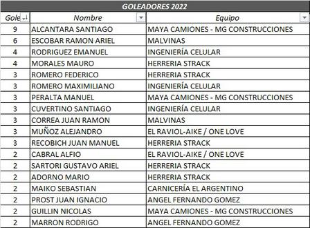 Con tres goles marchan Alejandro Muñoz, Santiago Cuvertino, Juan Ramón Correa, Juan Manuel Recobich, Manuel Peralta, Maximiliano Romero y Federico Romero.