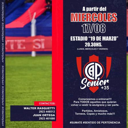 En el Estadio 19 de Marzo, los días lunes, miércoles, y viernes, desde las 20.30 horas, tendrán lugar prácticas para quienes quieran sumarse al plantel de Fútbol Senior +35.