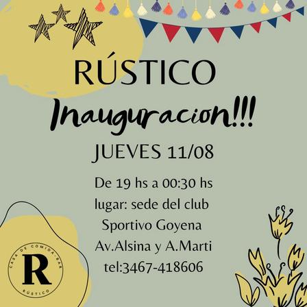 Desde las 19.00 horas, en la Sede Social del Club Sportivo Goyena, estará abriendo sus puertas Rústico.