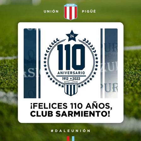 El mensaje publicado en las redes sociales del club albirrojo señala “¡Feliz 110 aniversario, Club Sarmiento Pigüé - Oficial!