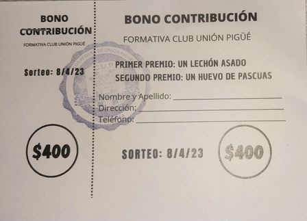 Las formativas del Club Unión Pigüé están ofreciendo esta rifa para recaudar fondos destinados a sus proyectos.